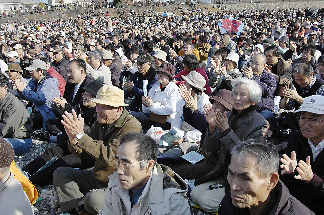 空母艦載機の移転に反対して開かれた集会(2007年12月、岩国市)