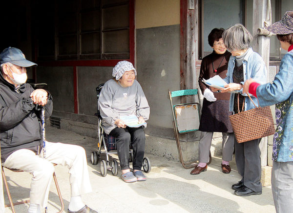 女性たちは、住民一人一人と顔を合わせながら訴えるなかで、「仲間が増えていく気がするね」「みんな協力してくれて手応えがあるね」とイージス・アショア反対の運動に確信を深めながら、戸別訪問を続けた。また自分たちが住む福賀地区より一足早く咲いた集落の花や畑の作物にも関心を寄せながら、半日かけて宇田を回った。