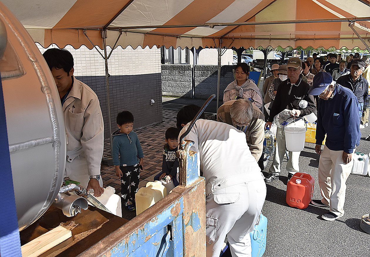 臨時給水所に並ぶ周防大島町民たち(昨年10月)