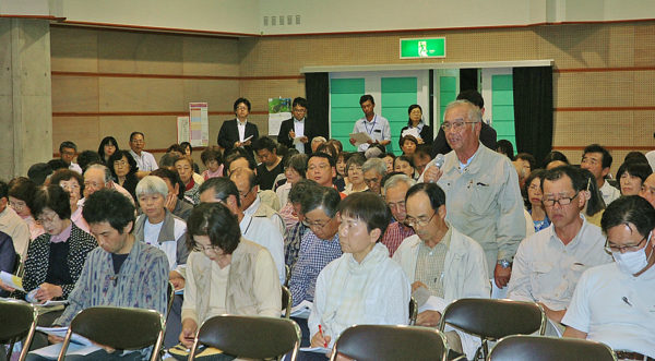 続いて下笹尾自治会の別の男性は、「この調査報告書は国(防衛省)に都合のいいことしか書かれていない。もっとも欠けているのは、調査の元データがまったく公開されていないことだ」と追及した。そして「イージス・アショアは防衛専用といっているが、場合によってはすぐに攻撃用にもなり得る装備であることを諸外国も危惧している。戦後日本が長きにわたって平和を保ってきたのは日本国憲法あってのことであり、それによって他国からも安全な国と見なされてきた。憲法は戦力の保持を禁止している。時の政権によって憲法の解釈が変えられ、自衛隊が持つ戦力の範囲が変わるのはおかしい。護身用のピストルであっても相手を撃てば殺せる。猟銃だからといってイノシシしか撃てないわけではない。いつでも兵器になりうるのと同じだ。ただいたずらに北朝鮮の危機だけを煽り、基地をつくって危険を増すことだけが安全に対する努力とはいえない。むしろ基地などない方がはるかに安全だ」とのべた。