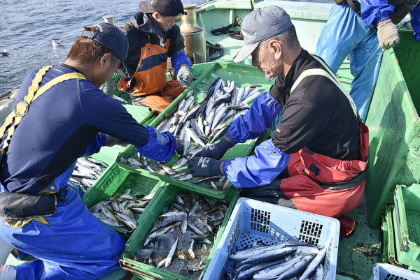 山口県阿武郡阿武町にある「道の駅 阿武町」には、休日や平日を問わず開店時間の10時前になると買い物客が押し寄せて長蛇の列をなす。客の目当ては地元の定置網をはじめとした漁でとれる“朝獲れ”の安くて新鮮な魚だ。「日本一魚が安い道の駅」の評判が広がり、地元の人人や山口県内各地をはじめ、隣の広島や福岡、さらに遠くは北海道などからも多くの人人が訪れる。阿武町の看板となり、地域の人人の交流の場にもなっている。鮮度抜群の魚が買い物客から喜ばれ評判も広がっているが、昨年度からはさらに鮮度保持や品質向上に力を入れて出荷するためのとりくみを漁業者や町、道の駅が一体となって開始している。漁業現場でどのような変革をおこなっているのか、同行取材した。