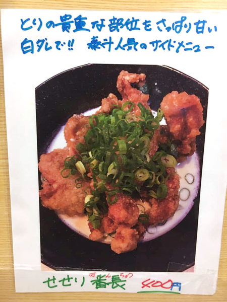 「路地裏でわかりにくいと思いますが、ぜひ手羽先を焼酎と一緒に楽しんでください」とのこと。