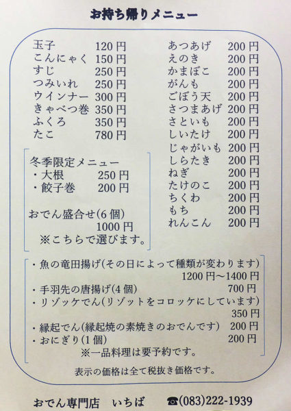 外に飲みにいけない分、一人暮らしの人でもおうちで満足できるよう、店長はじめスタッフの心がこもった品々だ。これらの商品は電話で予約できる。ただし、オードブルとお刺身盛り合わせは前日までの予約が必要。引き渡し時間は午後3時から8時まで。出前はしていない。