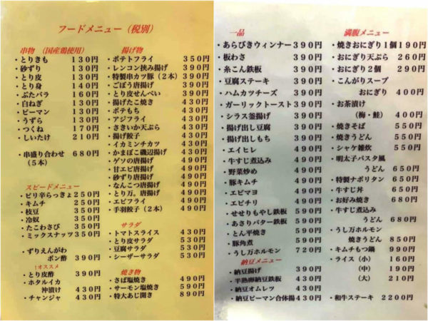 店頭価格は、バラ190円、モモ160円、ぼんじり140円、せせり160円、ささみ160円、ねぎ間260円などの定番から、一歩レバー210円、ハツ140円、久留米ダルム(白モツ)250円などのモツ系。さらに、つくねおろしポン酢210円、豚バラチェダーチーズ260円、レタス月見260円、エビタルチーズ260円、アボガド肉巻きチーズ260円、みょうが巻き210円、トマト巻き220円など、他では味わえない工夫を凝らした創作串が揃っている。