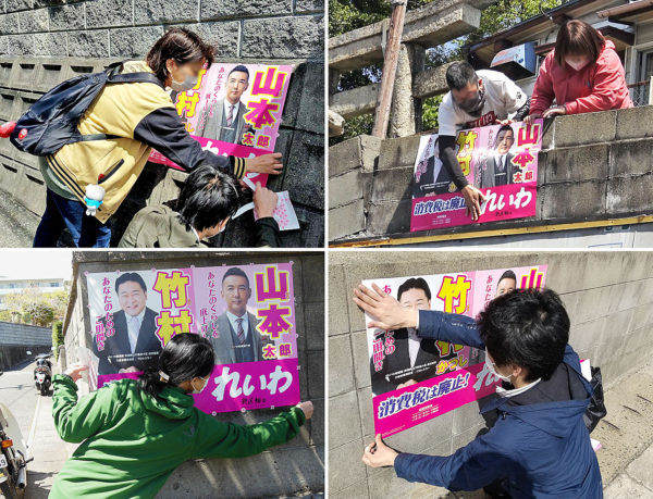 れいわ新選組衆院山口4区総支部(下関市)では、同党候補予定者の竹村かつし氏と支援するボランティアによるポスター掲示活動が連日活発におこなわれている。下関市民をはじめ、県内外から集まったボランティアたちが、政治活動用のポスター(演説会告知用)を持って選挙区内(下関市、長門市)全域に散らばり、市民との対話を重ねながら一枚一枚掲示していく――活動の開始から約1年が経過した。安倍晋三前首相のお膝元で、長く「無風区」といわれてきた山口4区での政治活動を下から盛り上げる活動は日に日に熱がこもり、各地に目立ち始めたポスターとともにその活動が注目を集めている。