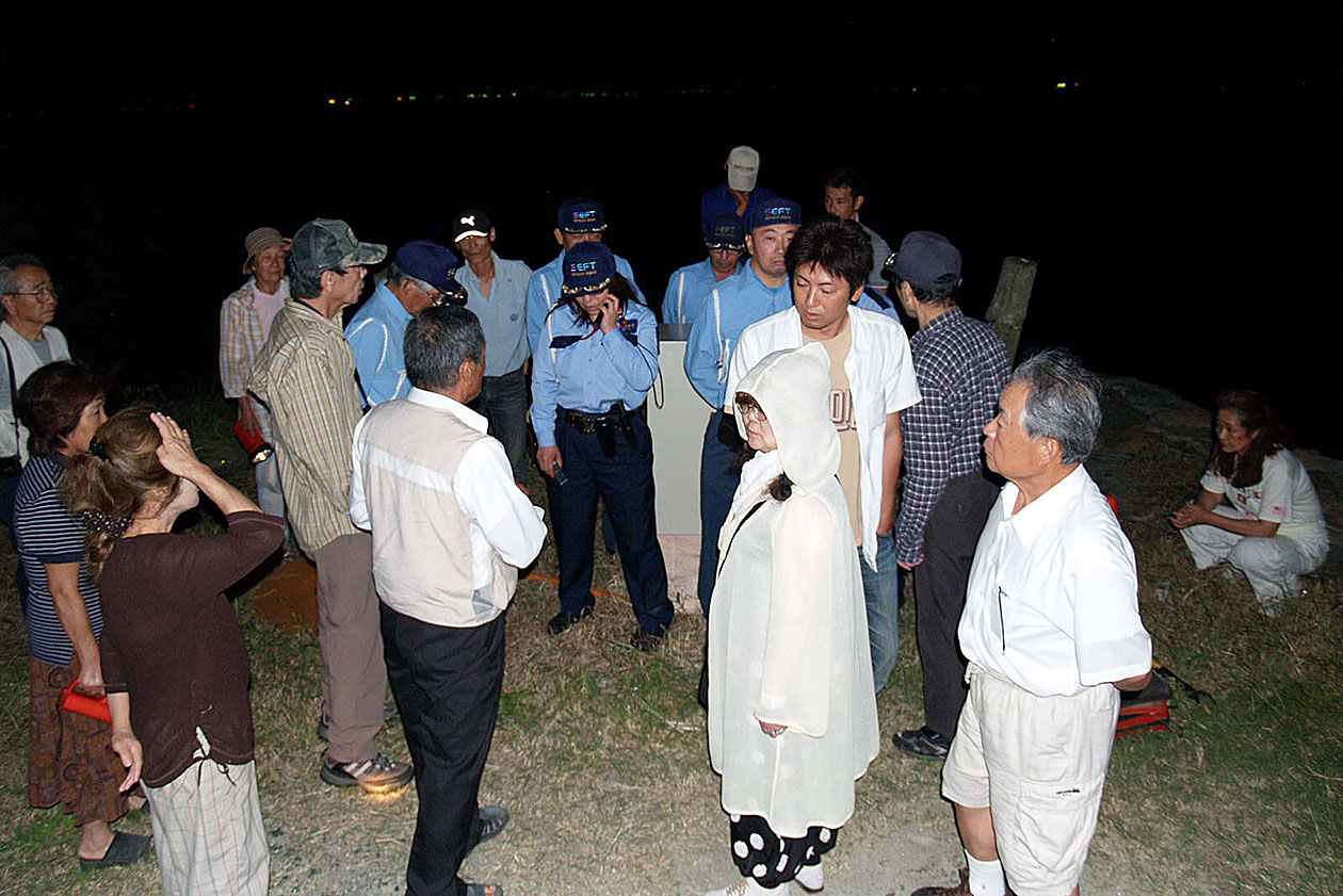 住民同意のないまま環境アセスを強行する前田建設工業に抗議する住民(2014年9月14日夜)