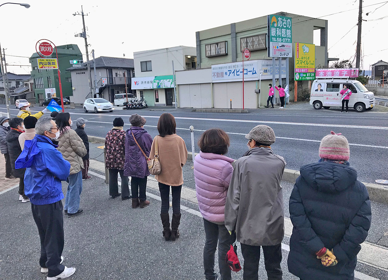 下関市議選終盤戦 最後の訴え届ける本池涼子陣営 各所で耳を傾ける市民