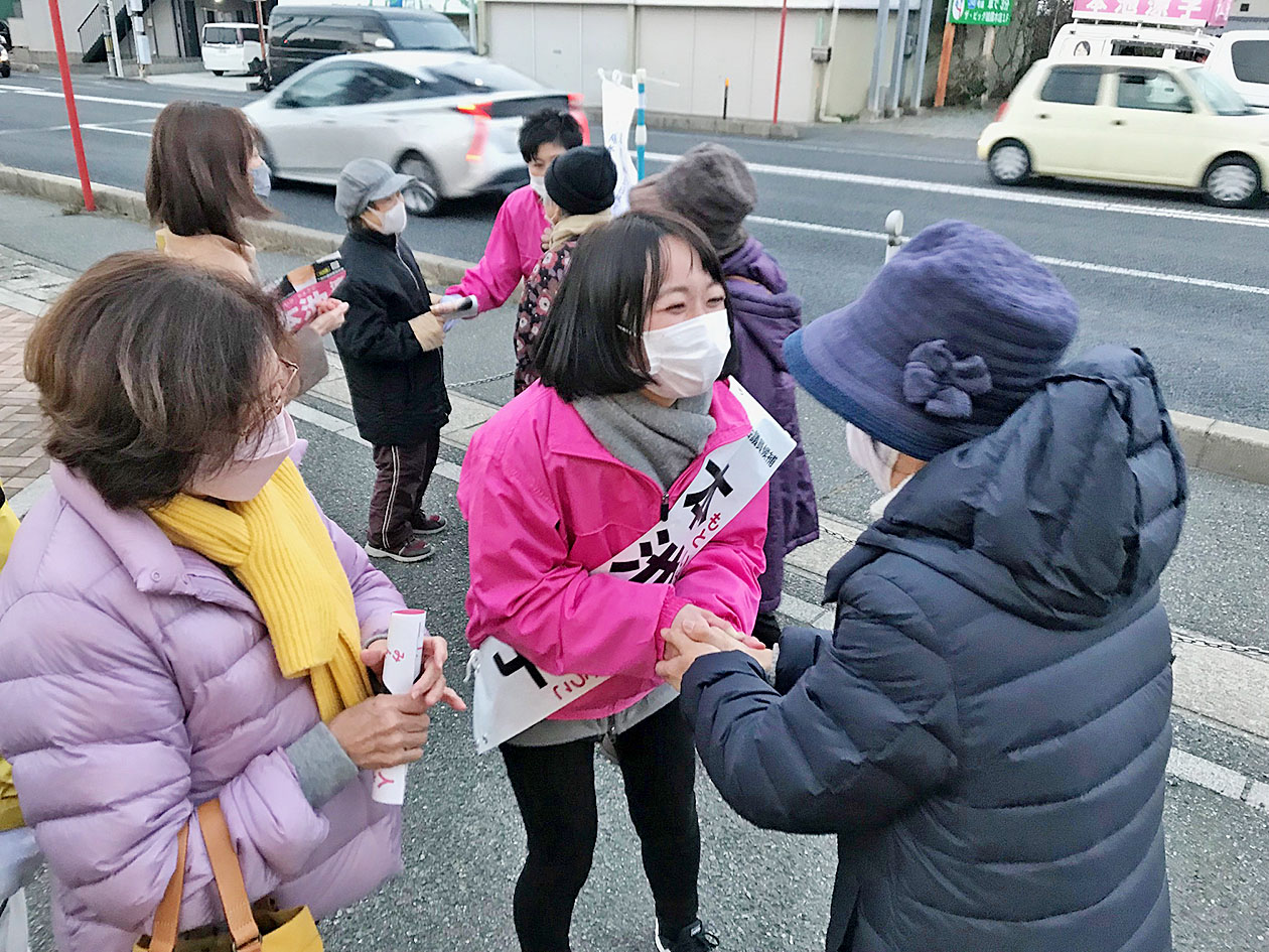 下関市議選終盤戦 最後の訴え届ける本池涼子陣営 各所で耳を傾ける市民