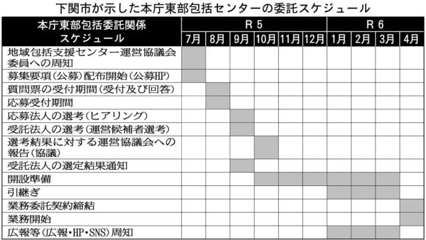 下関市地域包括支援センター運営協議会が6日に開かれ、そこで突然、唯一の市直営である本庁東部地域包括支援センターを来年度(令和6年度)から民間委託する方針が示され、ケアの現場にかかわる人々のなかで驚きと憤りをもって受け止められている。市内に12カ所ある地域包括支援センターのうち11カ所は医療法人や社会福祉法人、社会福祉協議会などが委託を受けて運営しており、その中核となってきたのが市直営のセンターだからだ。関係者がこの日初めて知ったにもかかわらず、7月中に募集要項の配布を開始し、9月に業者選考をおこなう予定が示されたことから、「すでに業者が決まっているのではないか」という見方も広がっている。
