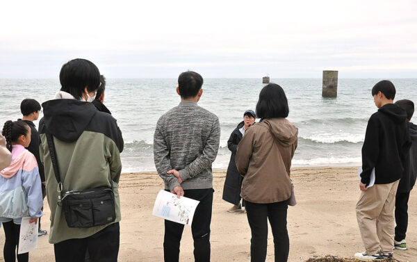 宇部市床波で83年前に起きた水没事故で183人(うち136人が朝鮮人労働者)が犠牲になった長生炭鉱。犠牲者は現在も暗く冷たい海に眠ったままになっており、遺族のもとへ遺骨を返還するために日韓共同での潜水調査や調査のためのクラウドファンディングもおこなわれ注目を集めている。「こどもの日」にちなむ特別企画として6日、長生炭鉱のフィールドワーク(現地見学会)がおこなわれ、県内の小・中・高校生と保護者が現地を訪れて長生炭鉱の歴史を学んだ。案内役を務めた「長生炭鉱の水非常を歴史に刻む会」の井上洋子共同代表が参加者に語った内容(要旨)を紹介する。