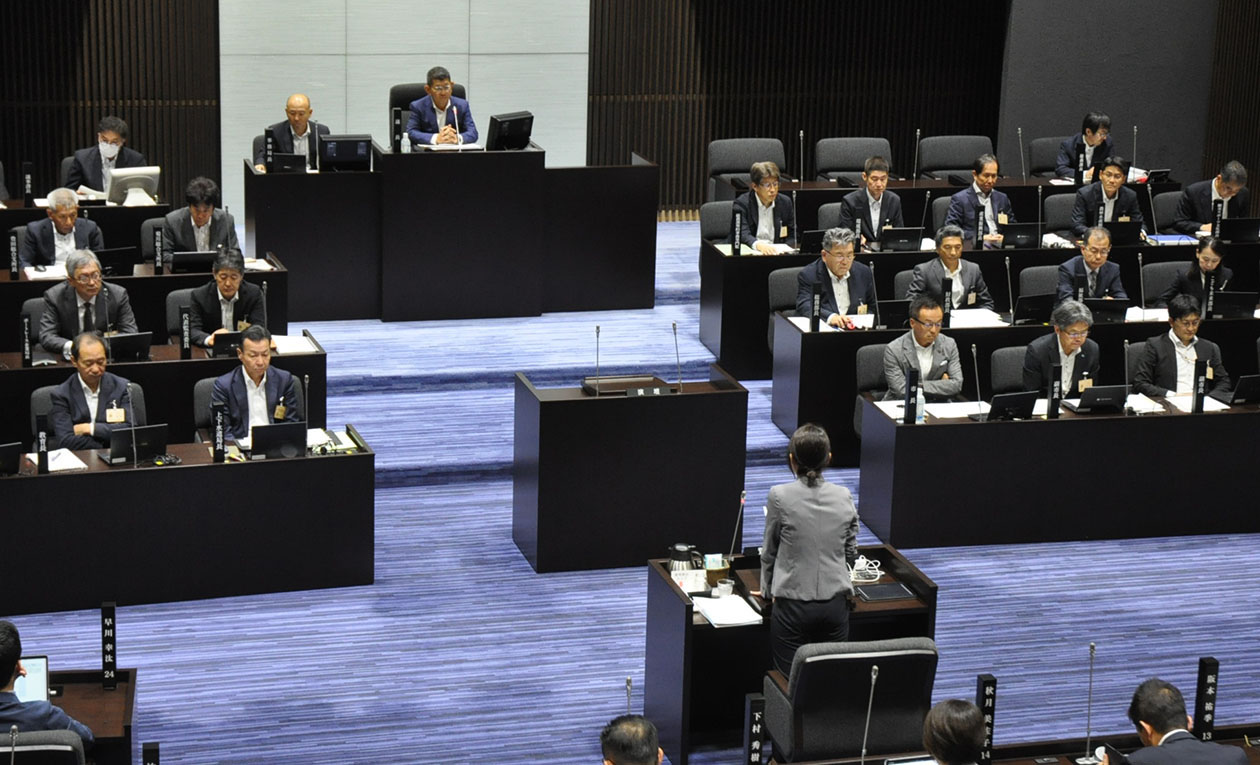 6月議会で一般質問をおこなう本池涼子市議(手前)