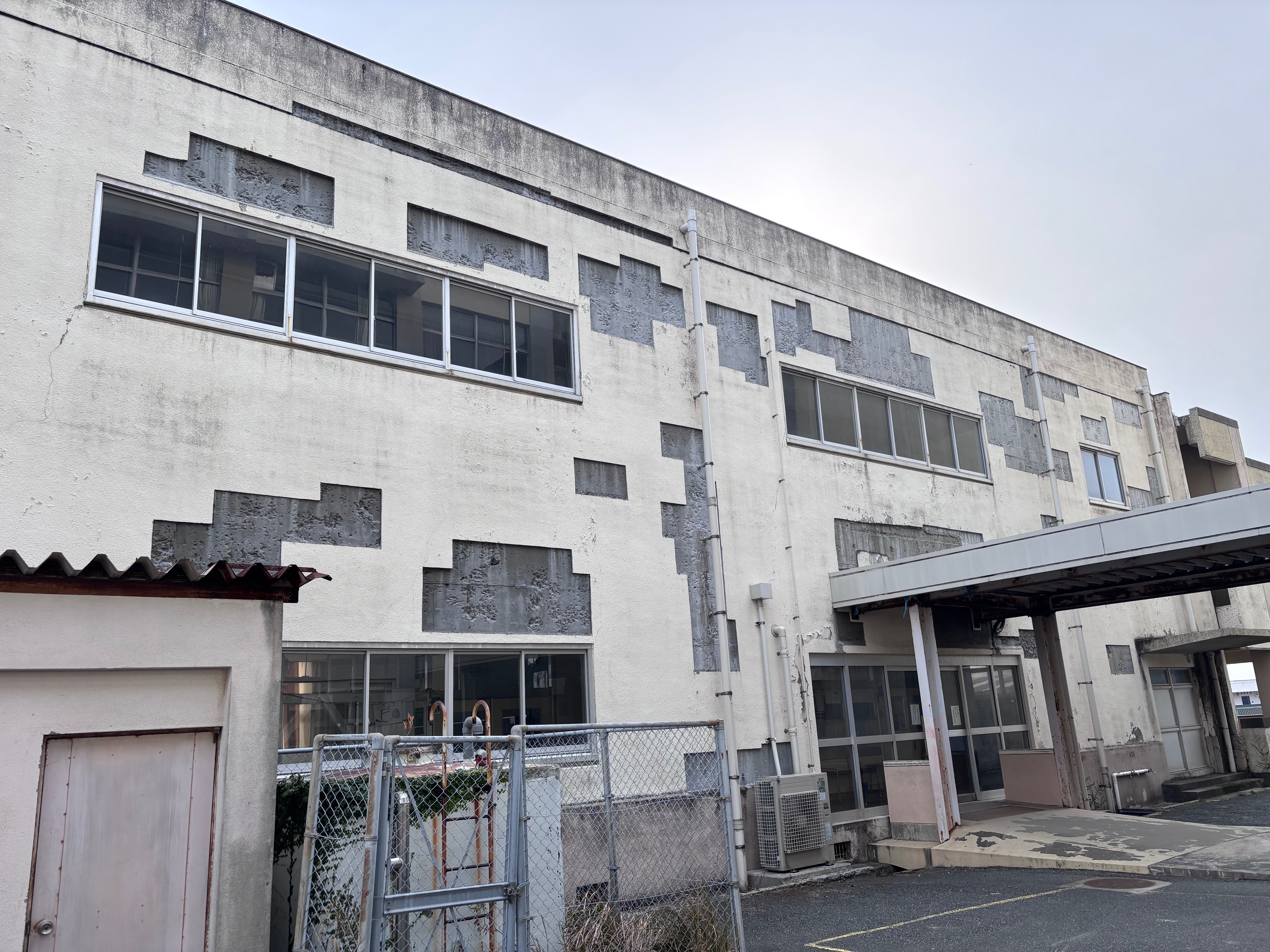 築71年の安岡小学校校舎。外壁が剥がれてコンクリが剥き出しになっている(下関市)