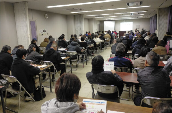 下関市が実施した学校体育館施設解放についての説明会には多くの利用団体関係者が詰めかけた(12月22日、下関市陸上競技場)