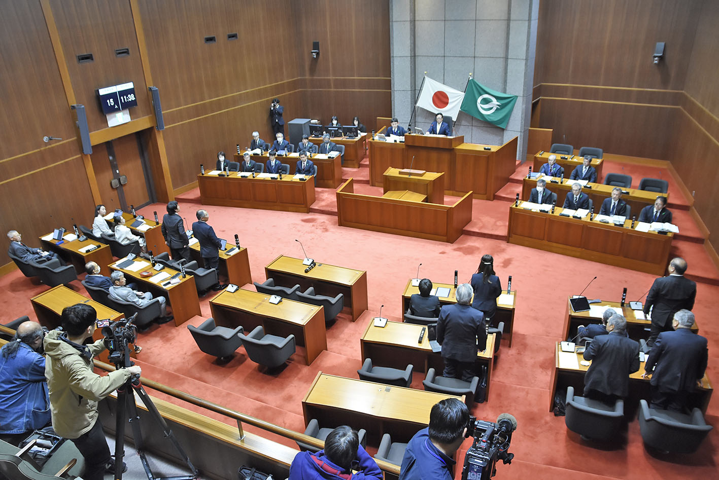 中間貯蔵施設反対決議を求める請願の継続審査に7人の市議が賛成した(24日、柳井市議会)