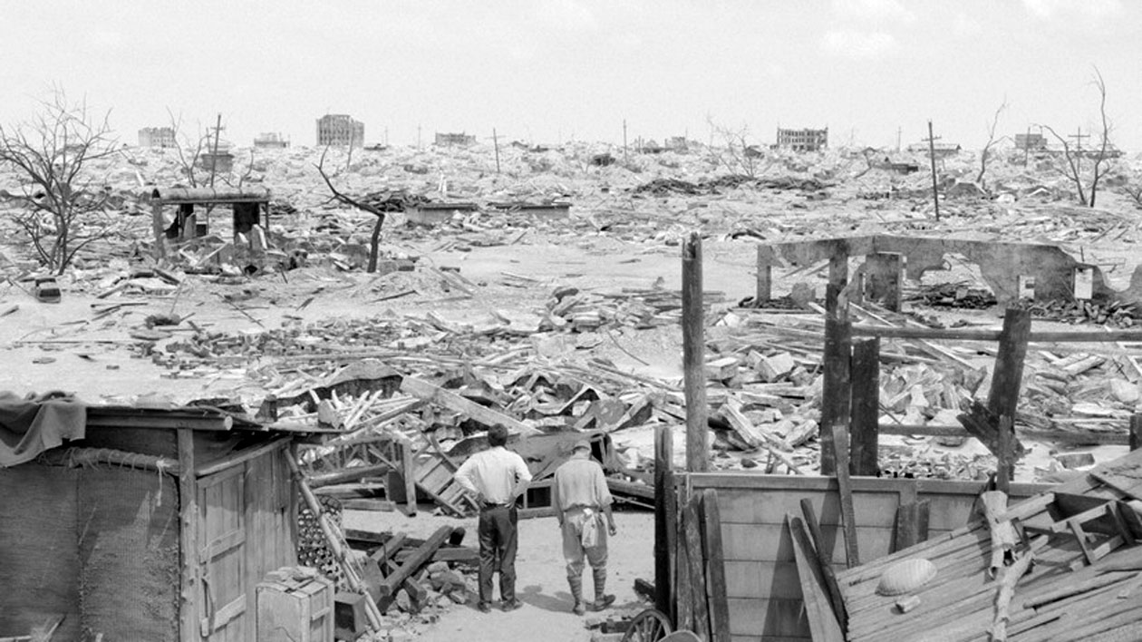 廃墟と化した東京の街を見つめるタケシと祖父(番組の一場面)