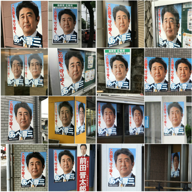 公示後、安倍事務所が下関市内にはりめぐらした安倍晋三ポスター(13日)