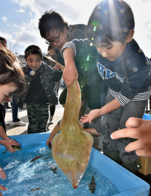 サザエのつかみどりに懸命な人、タッチングプールで生きた魚を手づかみにする子どもたち、ふく鍋やあんこう鍋に行列をなす人人など、祭は魚好きな市民によっておおいに賑わった。水産関係者たちによると、早朝に魚を買い求めに来る人人は、購入した魚の鮮度を気にしてあまり滞在せずに帰って行く。その後、胃袋を満たしたり祭そのものを楽しみに来るファミリー層や年配層など、別の客層が足を運び始めるのも特徴のようだ。