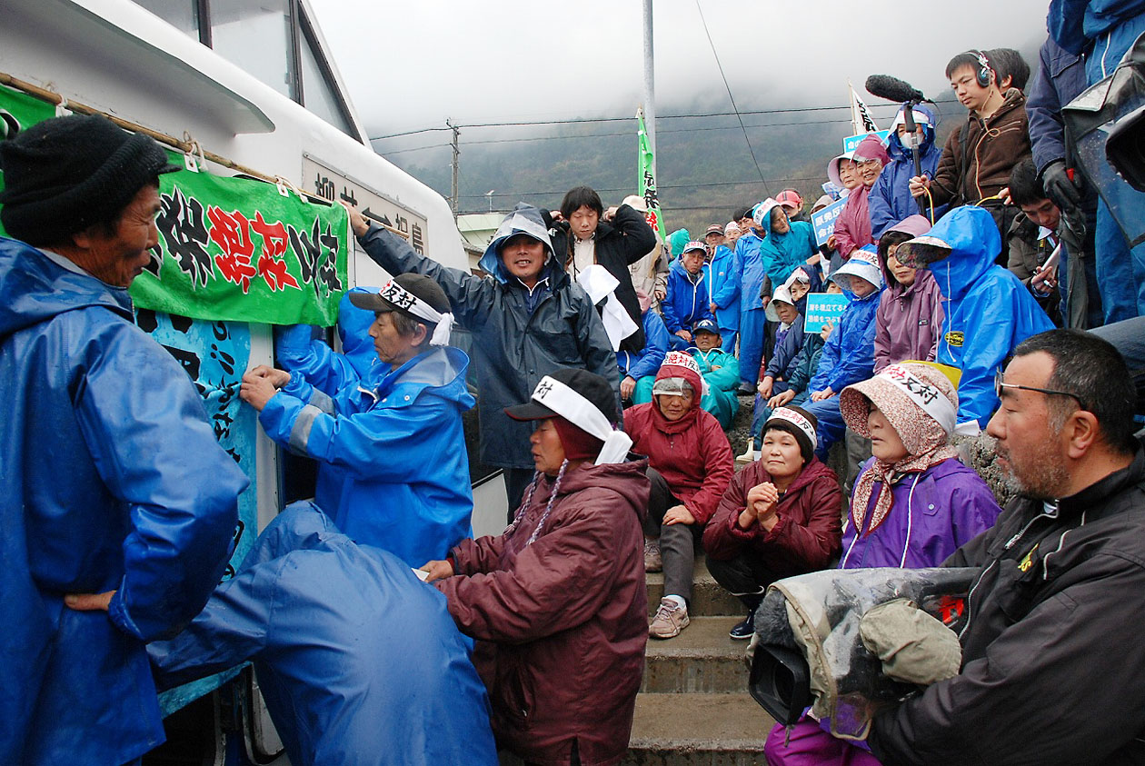 共同漁業権を守り、中電の上陸を阻止する祝島の住民たち(2010年)