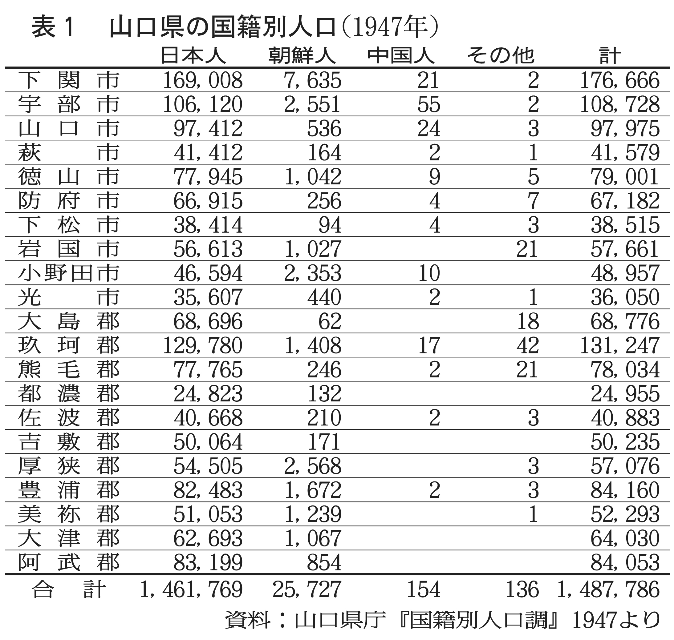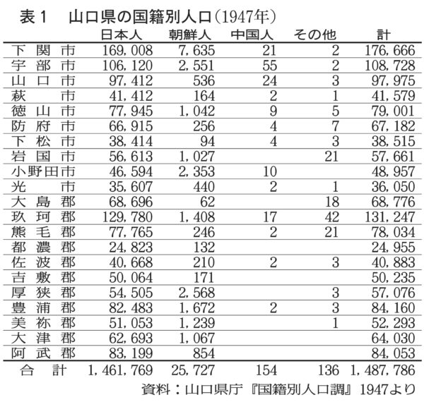 朝鮮人は県下で3万人おりましたからね。この他に密航で来た人もおるし、統計外 [徴用などで来た] の人数も入っていない。下関だけで1万5000人おりました。帰るために下関に来て、そのまま居座った人もおります。朝連のとき調査しましたから、3万人は間違いないでしょう。