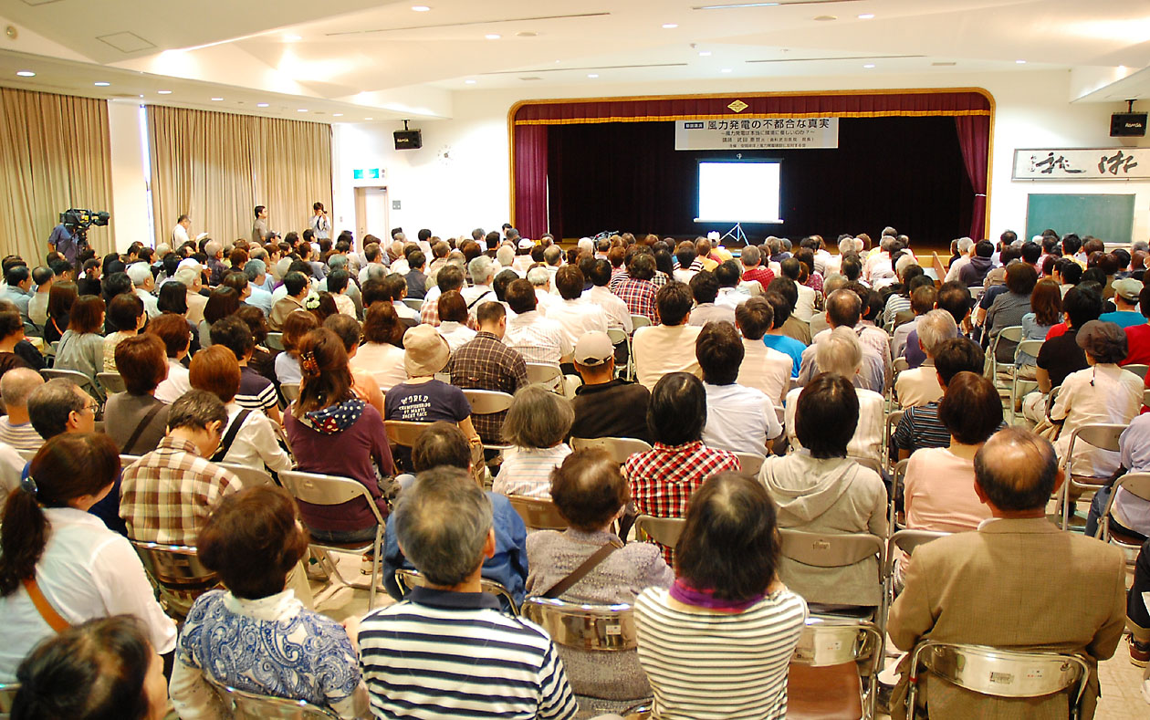 風力発電について学ぶ講演会はそのたびに参加者が溢れる(2014年6月)