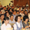 風力反対運動の5年間を振り返ったパネルに見入る人々