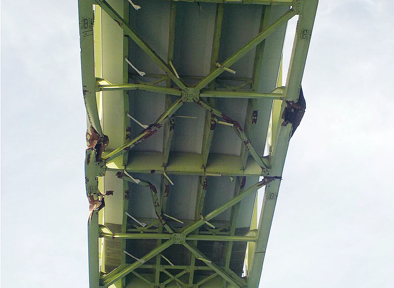 損傷が激しい大島大橋の事故部分(山口県提供)